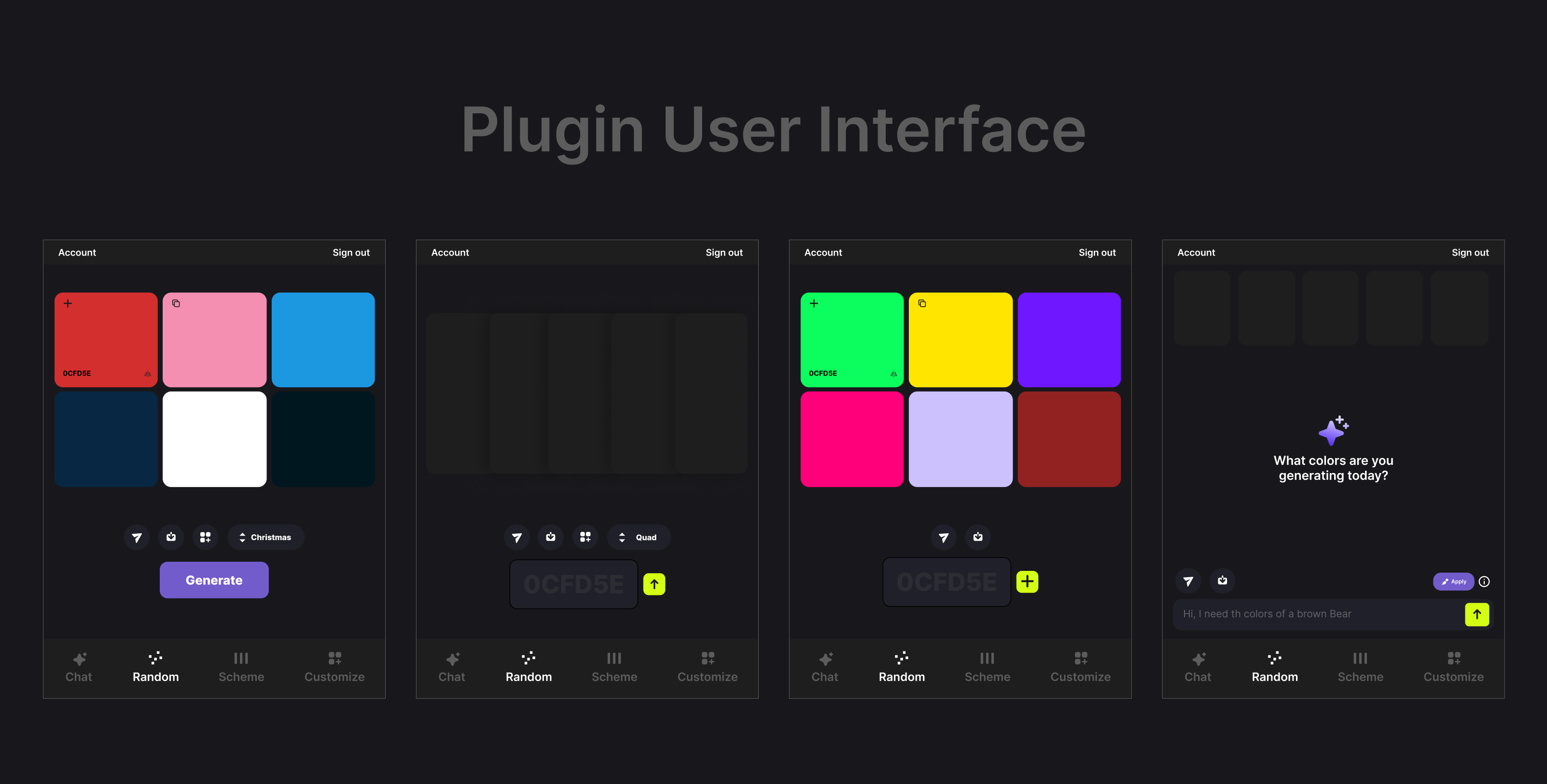 I mapped the shared workflow across each host platform, defined a unified component system, and built UI patterns that could adapt to plugin constraints. I iterated on palette creation, export, and collaboration states, validating the UI with quick feedback loops before polishing the full design system.