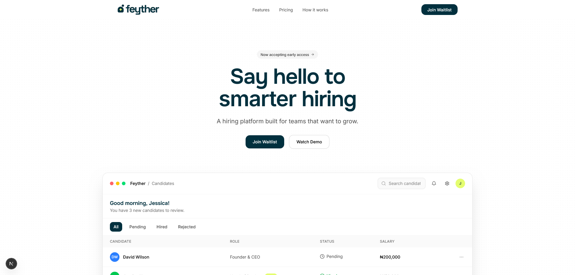 Feyther is an AI recruiter agent for startups and HR teams that runs the full hiring cycle, from posting jobs and sourcing candidates to screening, scheduling, and onboarding.