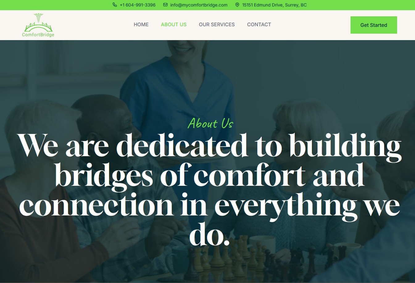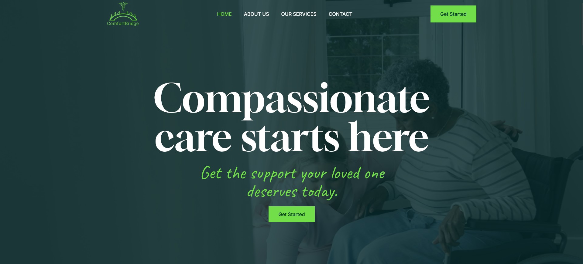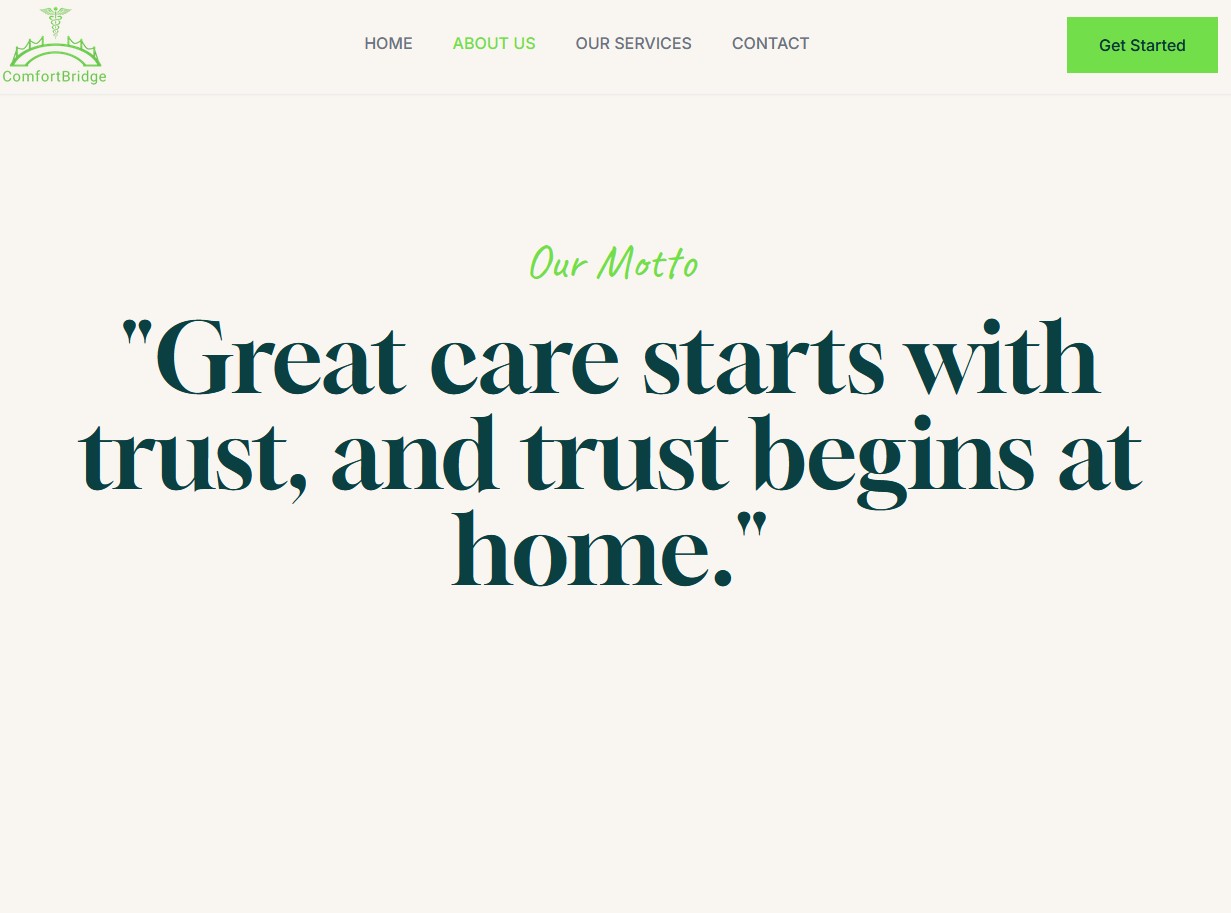 Families seeking care services face overwhelming choices and unclear information. ComfortBridge Inc. offers daily support, medication assistance, companionship, and custom care plans, but their website didn't communicate the warmth, professionalism, and person-focused approach that sets them apart. The service range was hard to navigate, and families couldn't quickly understand how ComfortBridge could help their loved ones.